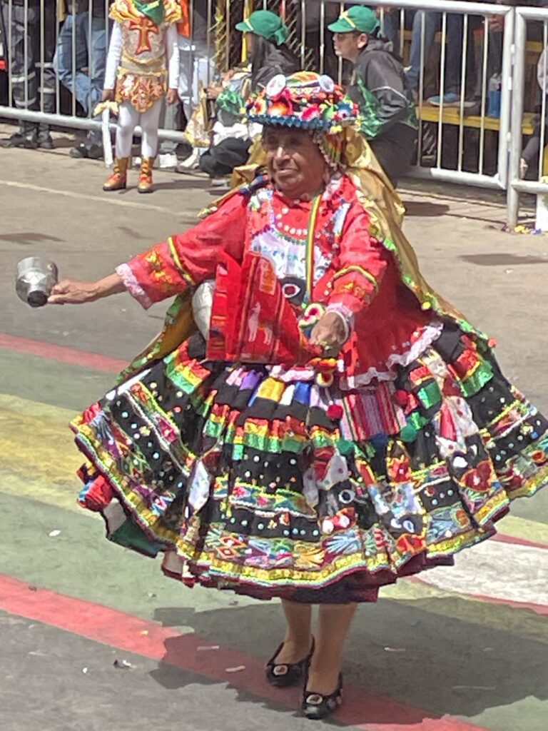 After each car passed by, the dance groups paraded along to represent the many different people through Bolivia’s history.